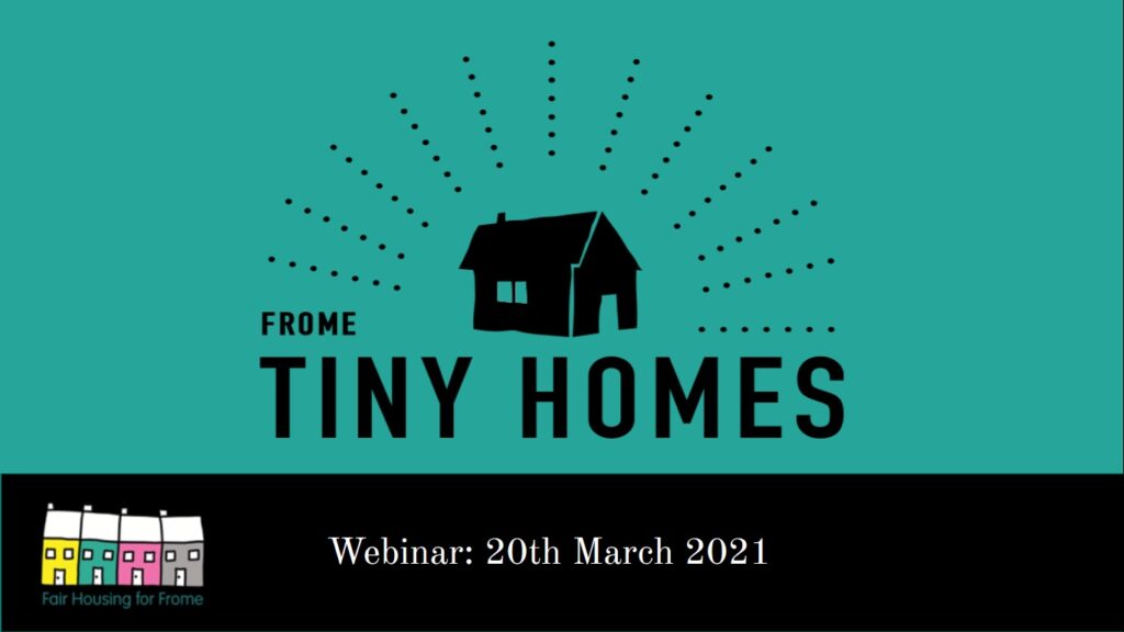The Tiny Team working on the project at Fair Housing for Frome is about to grow, following the webinar that was broadcast on 20th March and is still available to view on our Facebook page. The purpose was to share our vision and progress, grow the group and draw more interest to the concept. Attendees were from all over the country and came bringing all sorts of different inspirations and experiences. But the common motivation seems to be that current housing and planning rules are out of date for many, and people are joining together to swap ideas and build the foundations of change.